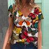Летняя женская футболка с короткими рукавами и V-образным вырезом в стиле Harajuku с принтом бабочки из полиэстера с 3D-принтом и цифровым принтом