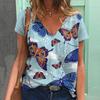 Летняя женская футболка с короткими рукавами и V-образным вырезом в стиле Harajuku с принтом бабочки из полиэстера с 3D-принтом и цифровым принтом — купить товар онлайн с бесплатной доставкой по всему миру!