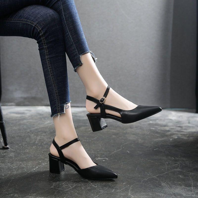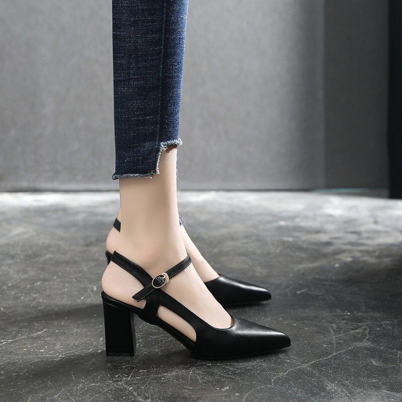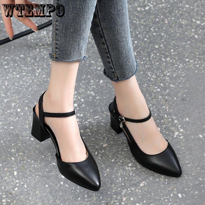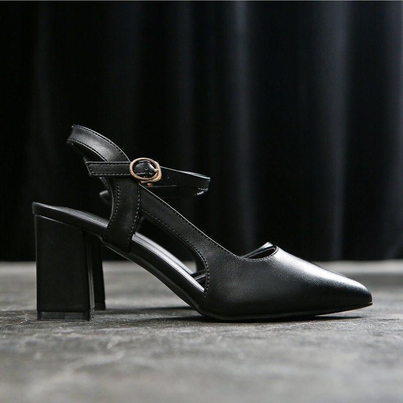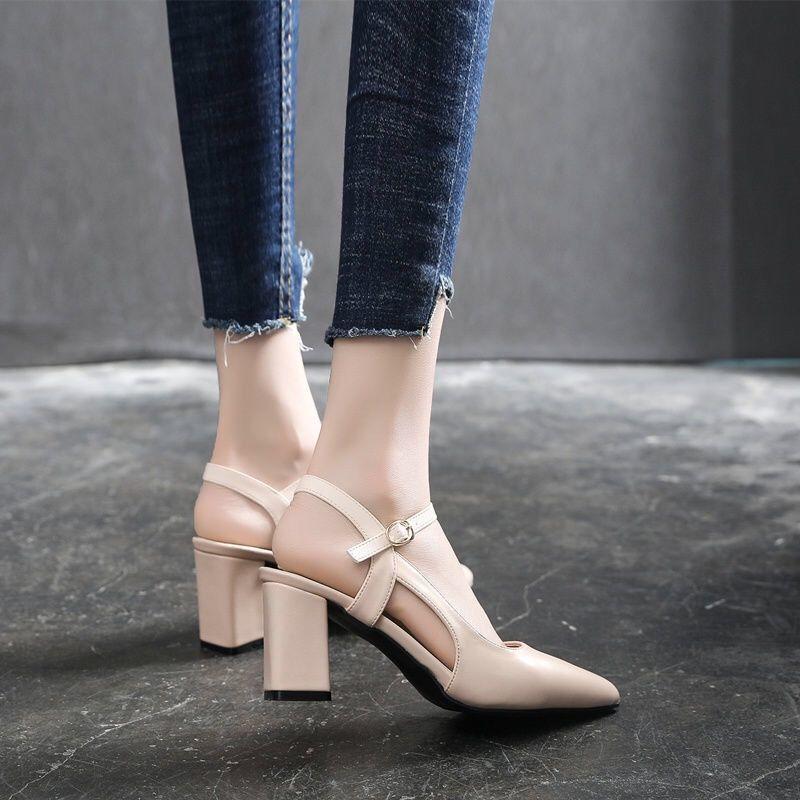 Острые сандалии для женщин, весенние корейские туфли на толстом каблуке с одной пряжкой и ремешком, повседневные туфли