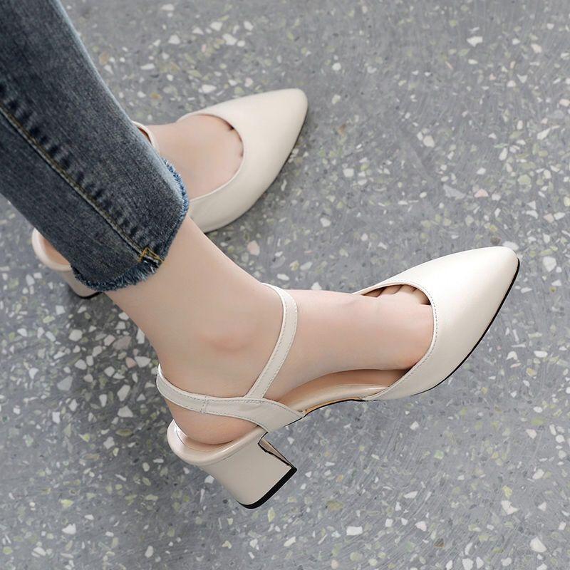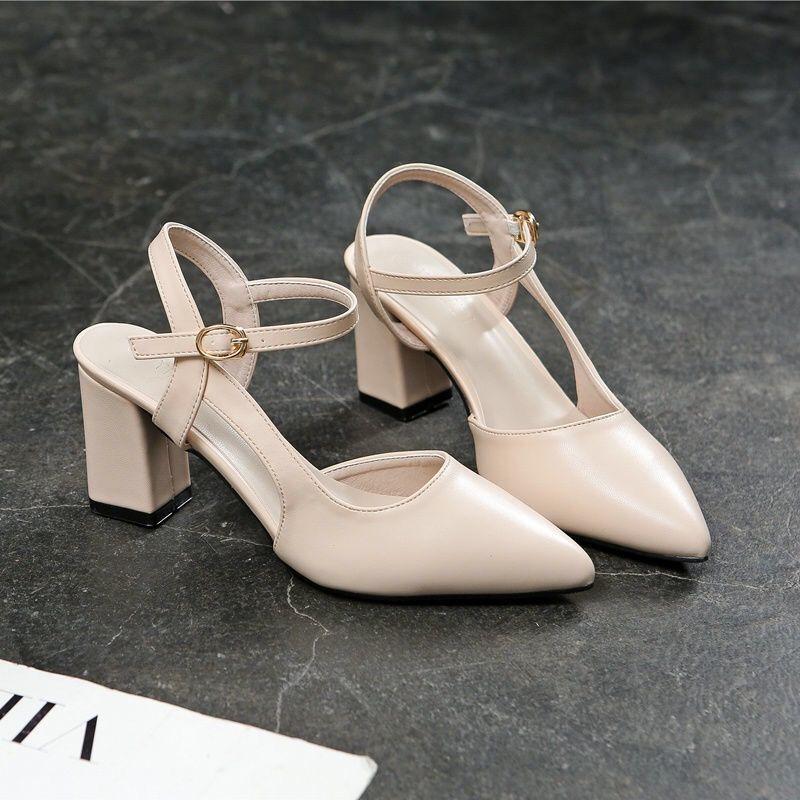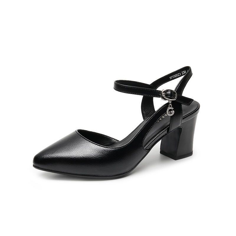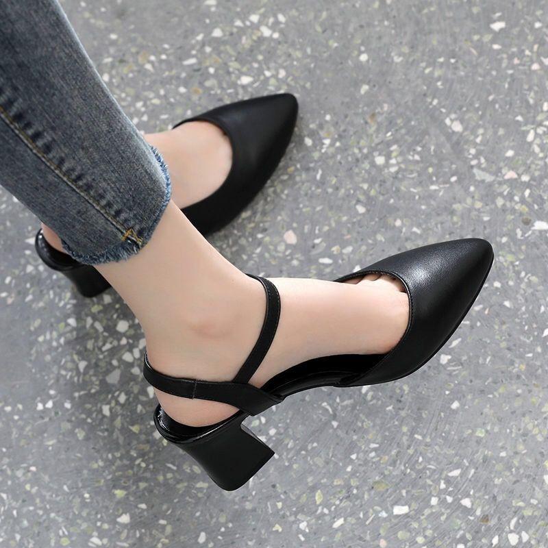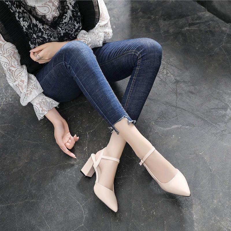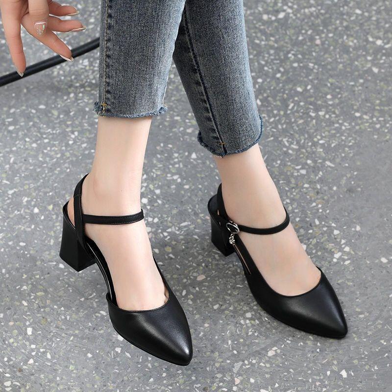 Острые сандалии для женщин, весенние корейские туфли на толстом каблуке с одной пряжкой и ремешком, повседневные туфли