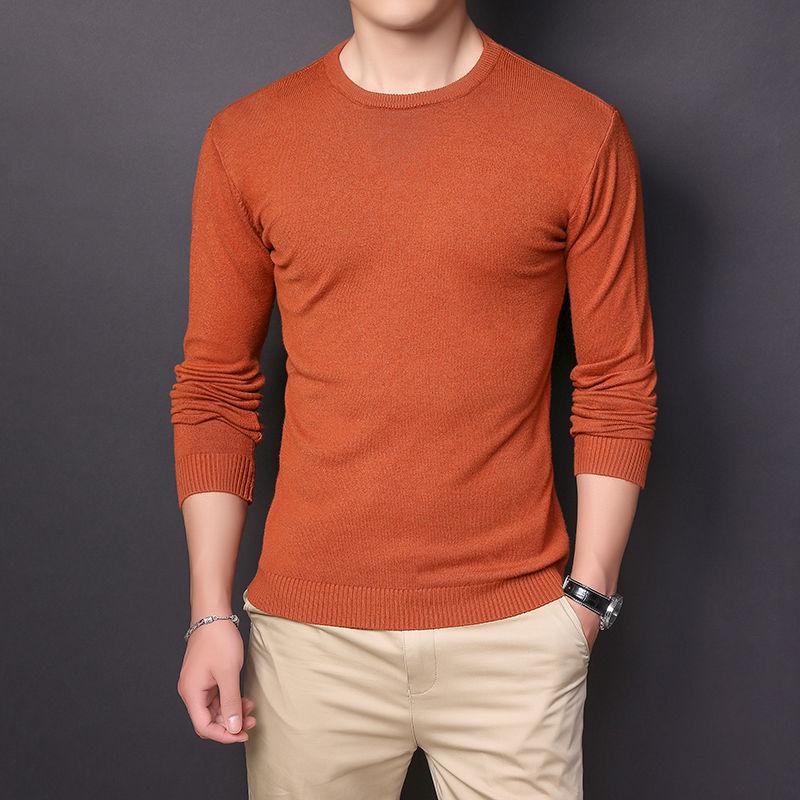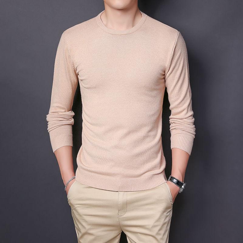 Весенне-осенний новый мужской пуловер с круглым воротником, однотонный тонкий свитер