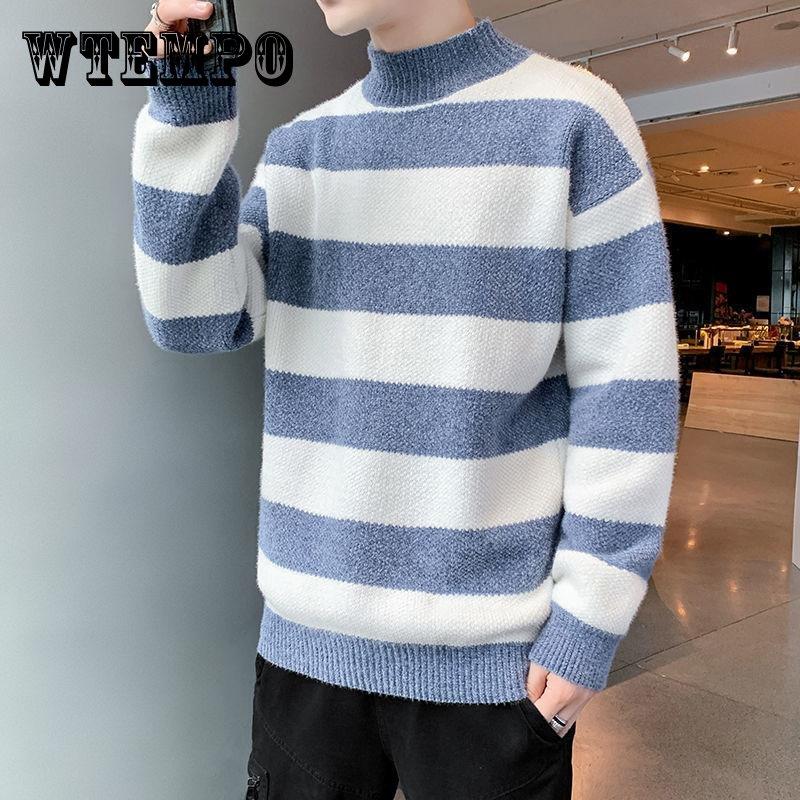 Свитер с высоким воротником, мужской полосатый свитер, утолщенный пуловер для студентов-подростков — купить товар онлайн с бесплатной доставкой по всему миру!