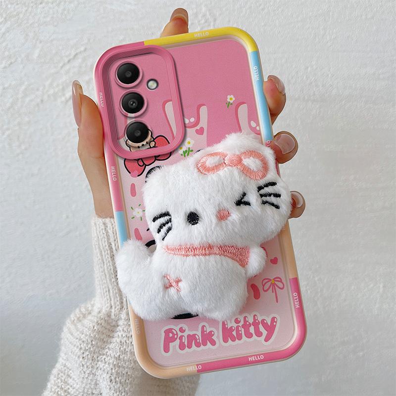 KEYSION Милый 3D мультяшный плюшевый чехол для Samsung A16 4G 5G с ремешком, мягкий силиконовый противоударный чехол для телефона Galaxy S23 FE 5G