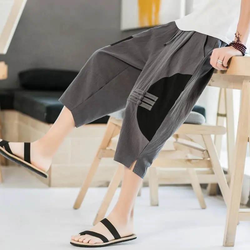 Мужские повседневные шорты, свободные шаровары большого размера, летние тонкие прямые брюки, домашние дышащие удобные укороченные брюки