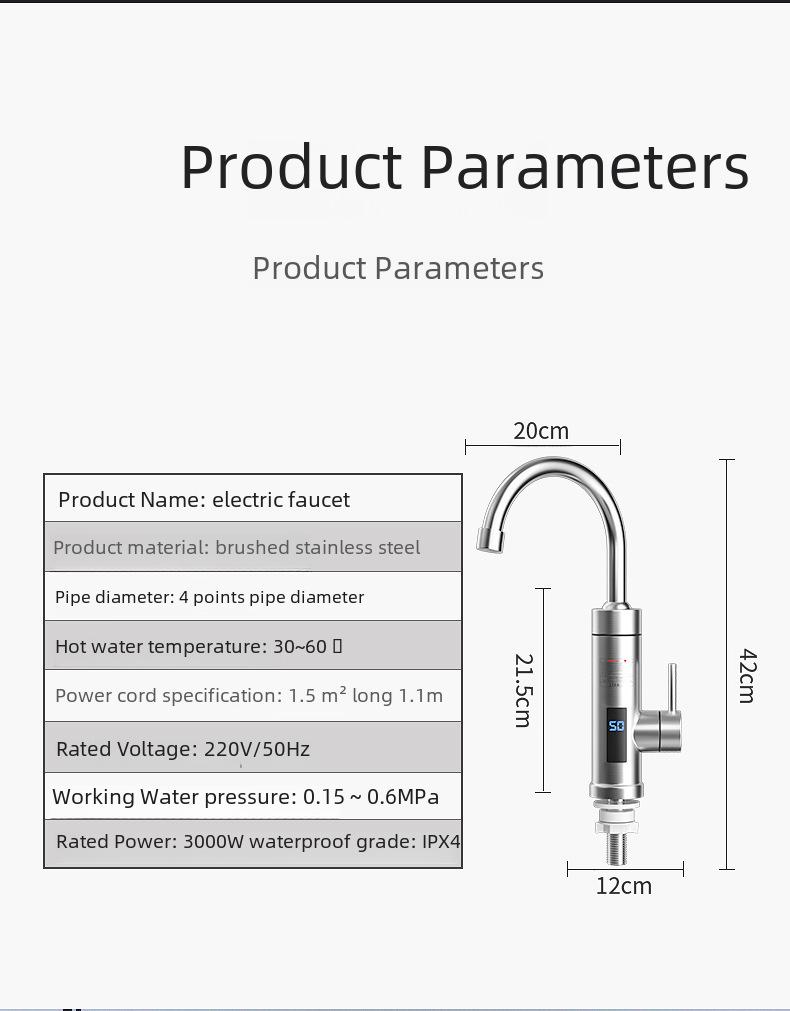 Цифровой электрический водопроводный кран из нержавеющей стали с двумя температурами