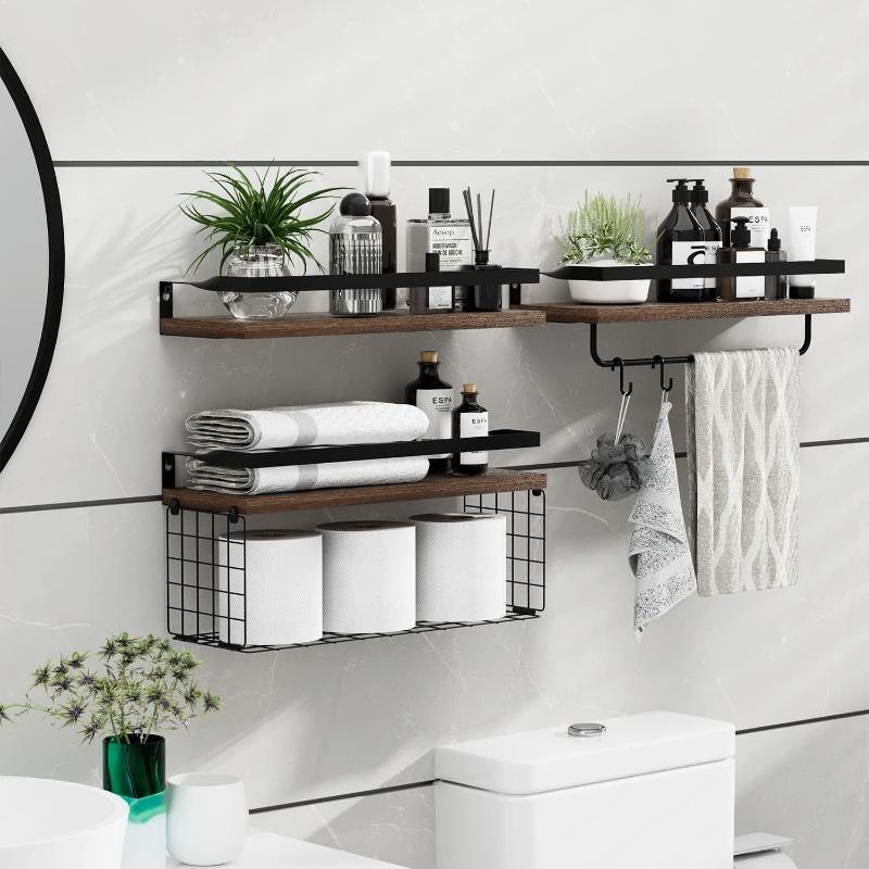 3 шт. плавающие полки деревянные настенные с корзиной для хранения защитные ограждения для ванной комнаты спальни настенный декор гостиной комнаты