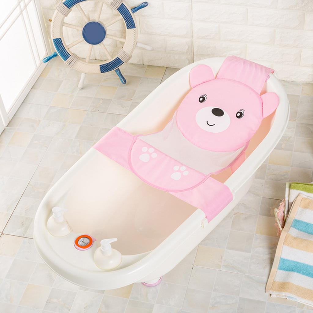 Мультяшный медведь для детской ванны, сетчатый карман, регулируемая ванна, кровать, три кнопки, безопасное решение для купания новорожденных
