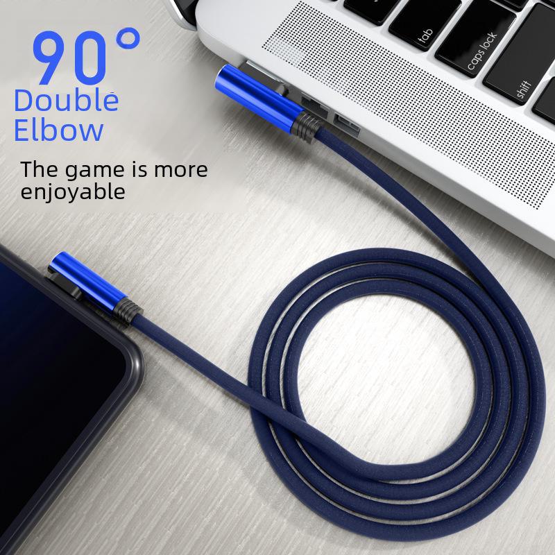 Dual Elbow Type-C Data Cable for Android & iPhone, Cotton Cloth Charging Cable
