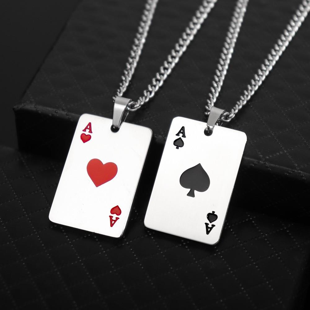 Модный поп-персонаж, подвеска в виде покера, A из червей, A из пик, вечеринка, пара, ожерелье из нержавеющей стали, праздничный подарок, аксессуары