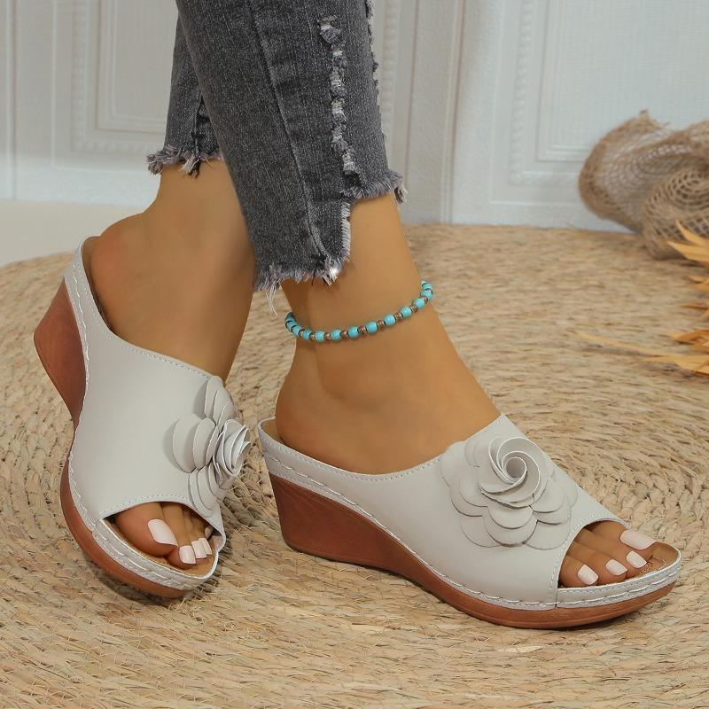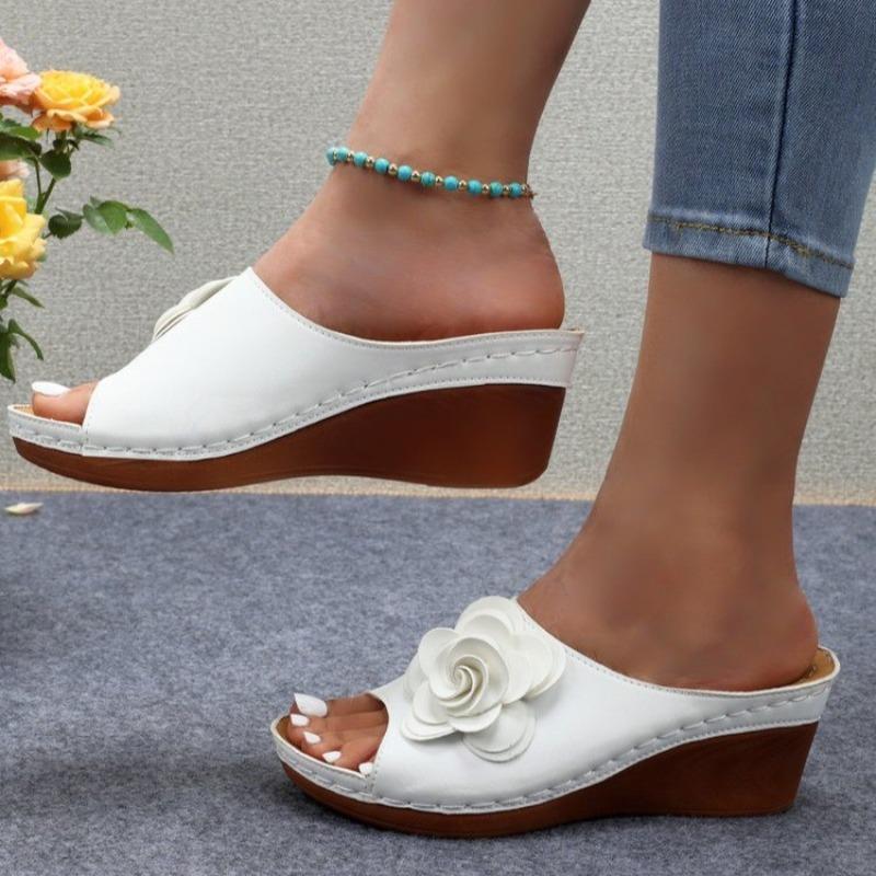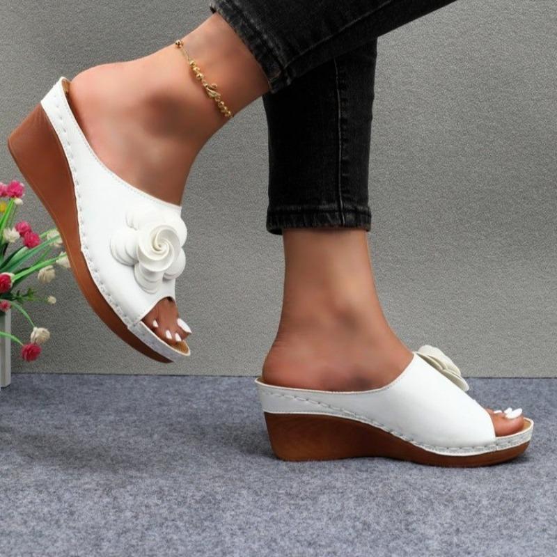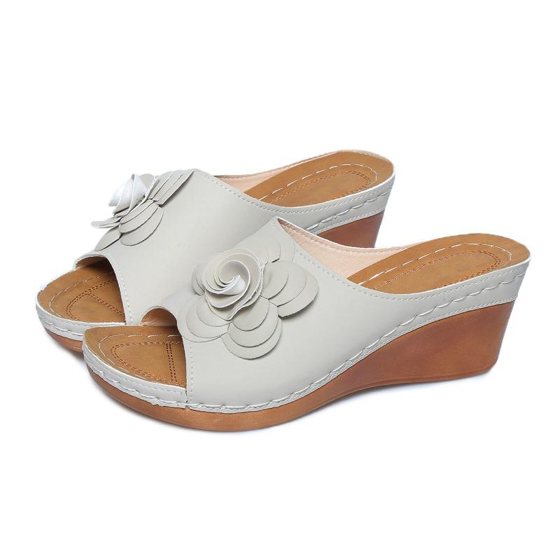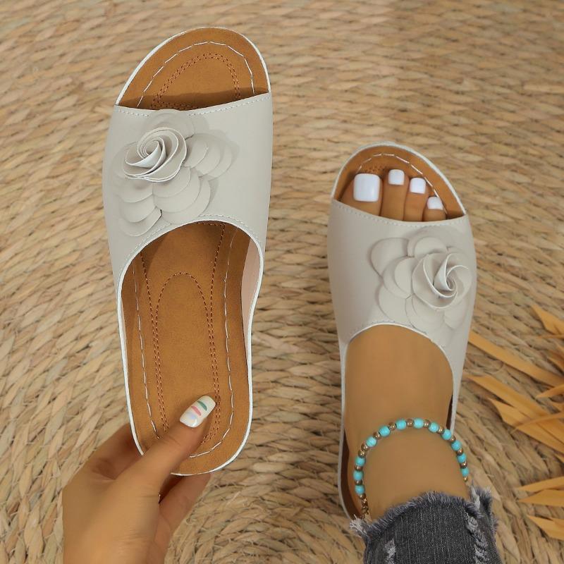 Распродажа женской обуви. Женские тапочки с открытым носком. Летние римские цветы. Однотонные повседневные тапочки на танкетке большого размера.