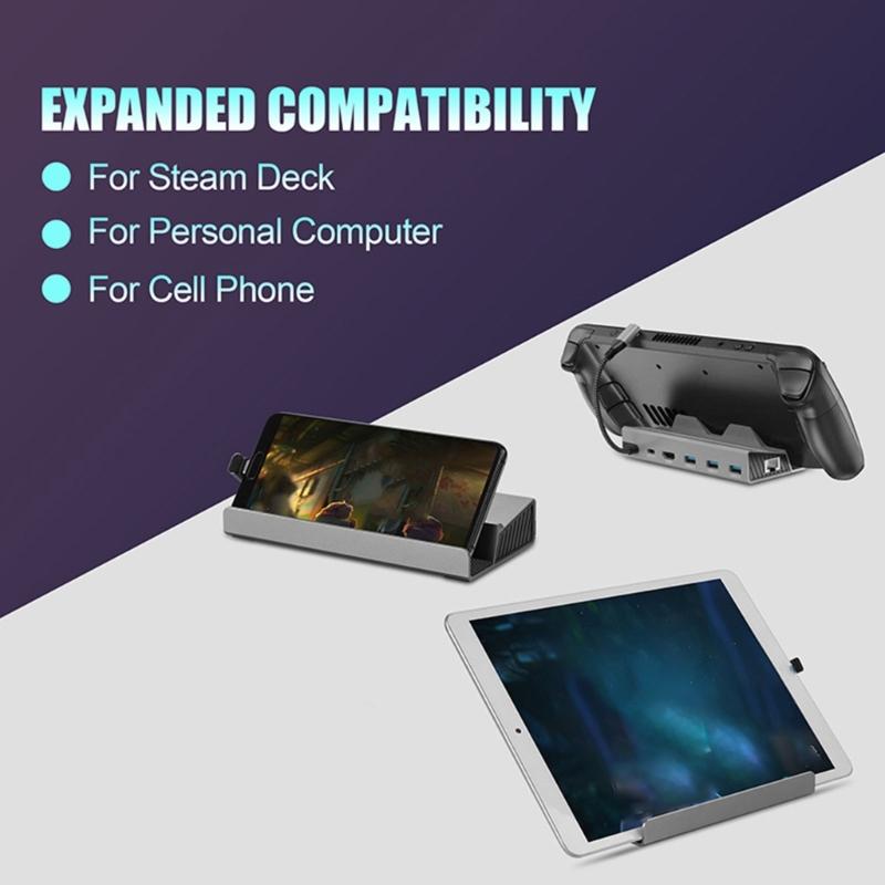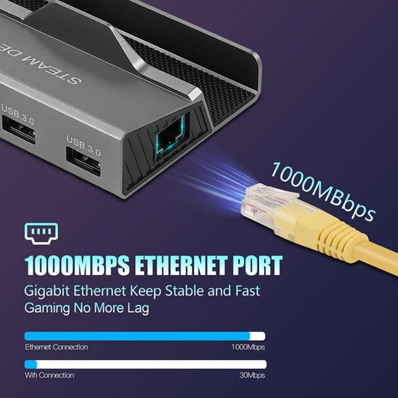 Для док-станции SteamDeck 6-в-1 Type-C Dock HUB с USB3.0x3+HDMI4K60hz+1000Mbps PD100W зарядка