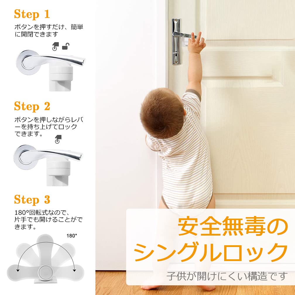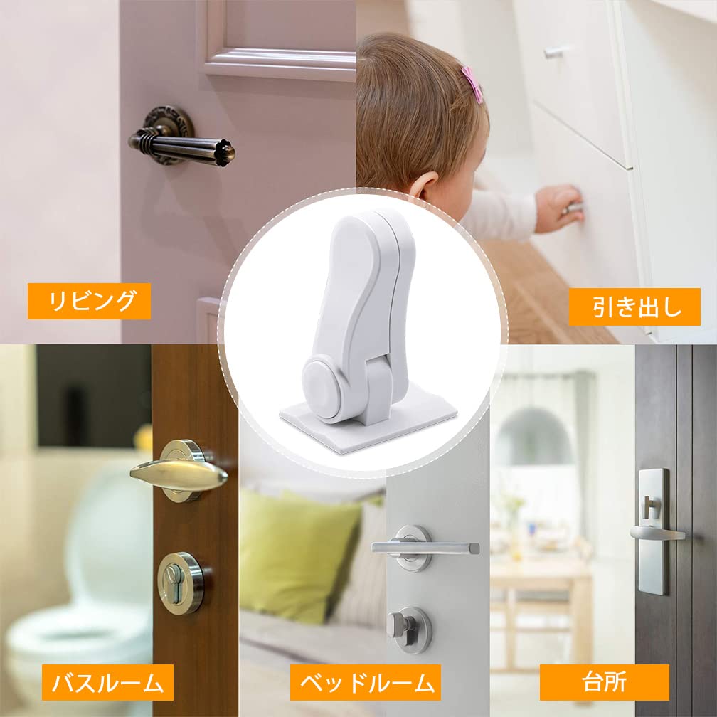 «Многоцелевой»: Широкий спектр применения, подходит для дверей, окон, ящиков, шкафов и т. д.. в комнатах, кухнях и ванных комнатах. После правильной установки единственный способ разблокировать замок — нажать кнопку и повернуть его, что обеспечивает хорошую защиту для детей.