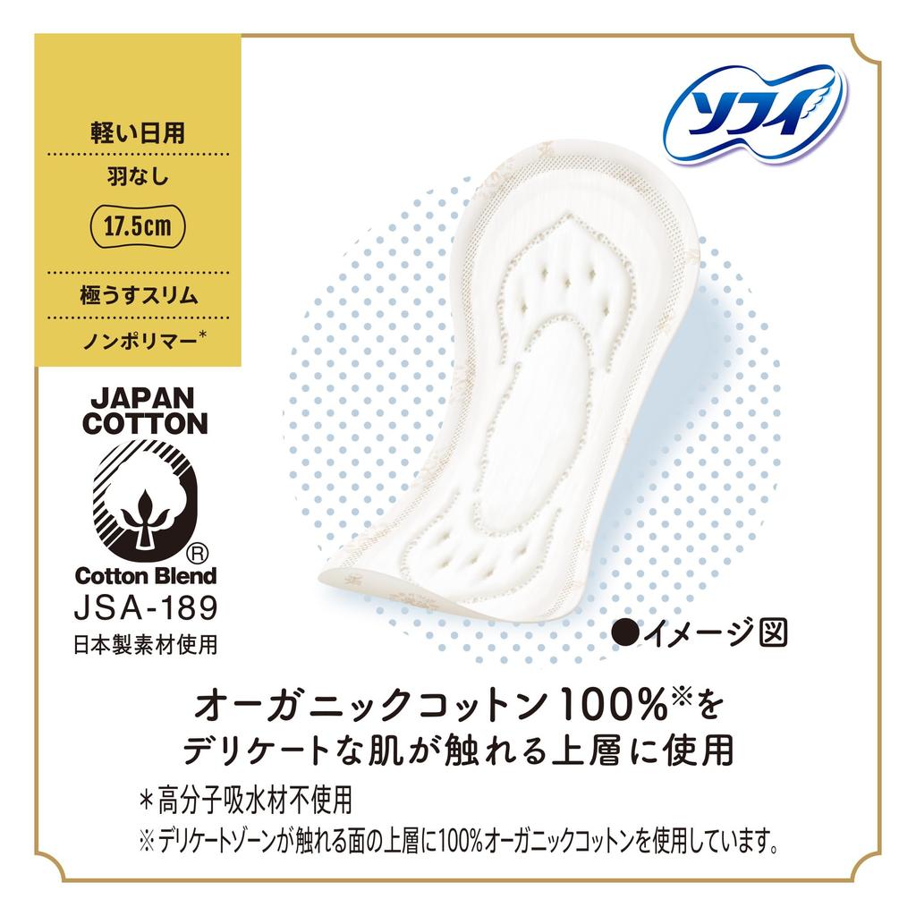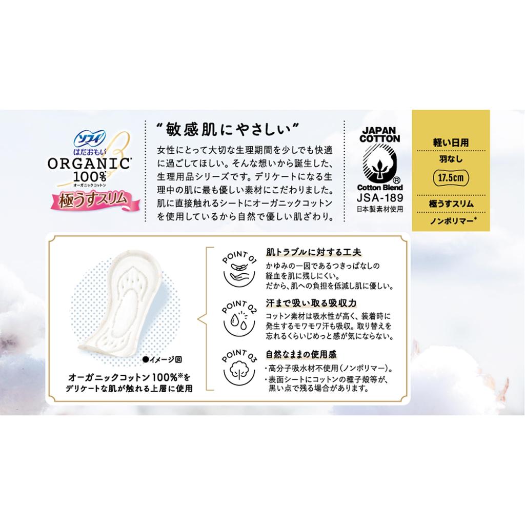 Sophie Hadaomoi органический хлопок очень тонкий тонкий легкий для ежедневного использования без крылышек 30 шт. набор из 3 шт. 17,5 см (Гигиенические салфетки)
