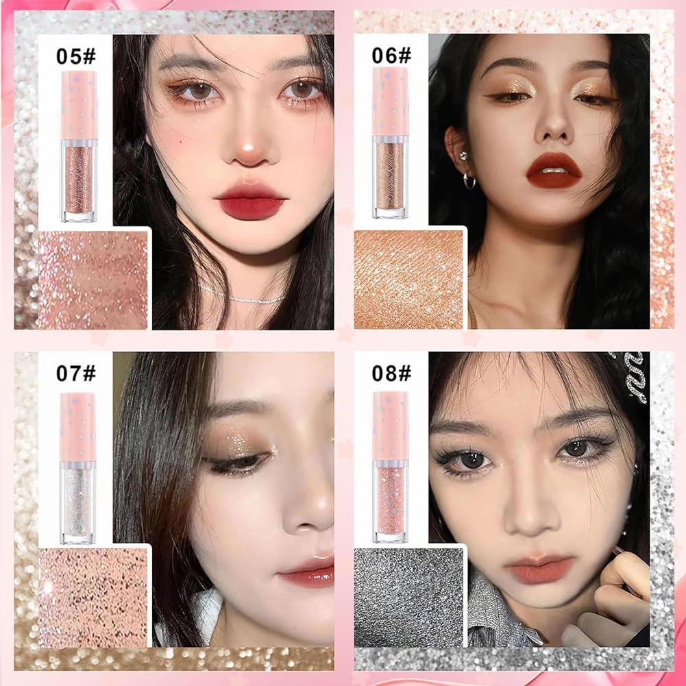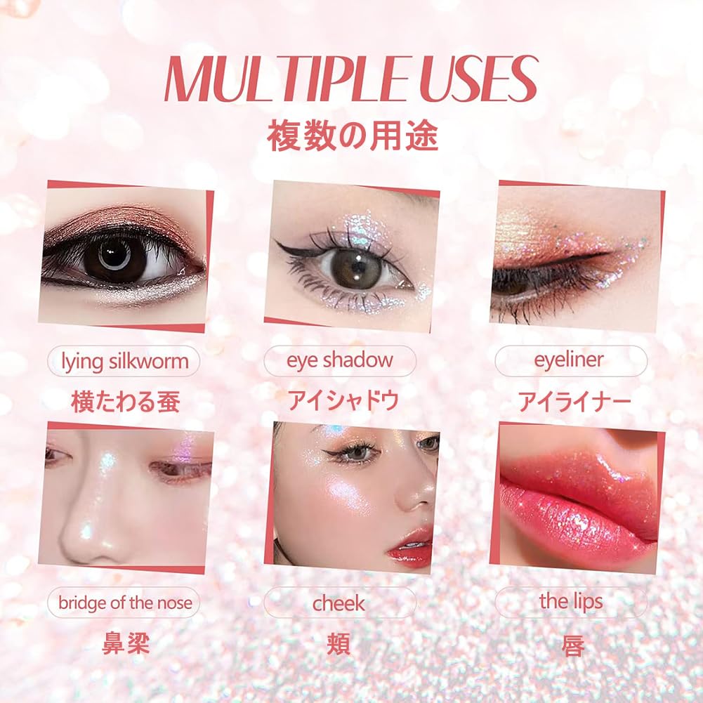 [Универсальность] Увлажняющая жидкая текстура тонко и гладко ложится на область вокруг глаз, позволяя вам легко создать блестящий, кристаллический эффект корейского макияжа.. Наносите его на линии роста ресниц или на ресницы, чтобы создать легкий весенне-летний оттенок.. Наша специальная формула, обеспечивающая ослепительное сияние на 360 градусов, улавливает свет со всех сторон, создавая завораживающее сияние.