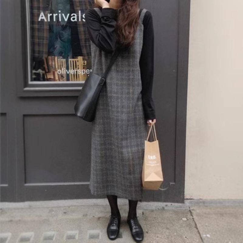Осенне-зимняя винтажная клетчатая юбка на подтяжках, свободные утягивающие шерстяные повседневные платья на подтяжках — купить товар онлайн с бесплатной доставкой по всему миру!