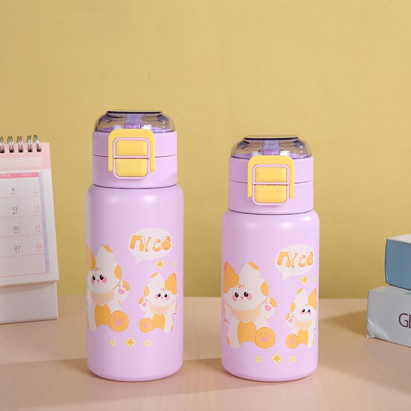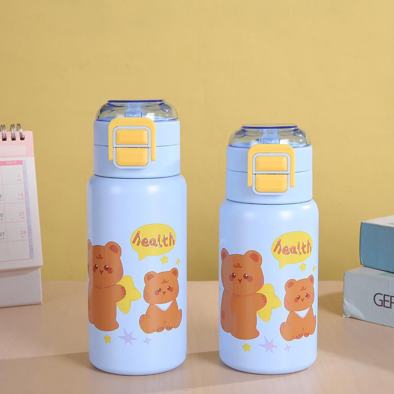 Творческий, высококачественный внешний вид, детский термос с мультяшным рисунком, нержавеющая сталь, крышка с одной кнопкой, двойной напиток, удобная кружка с подпрыгивающей трубочкой