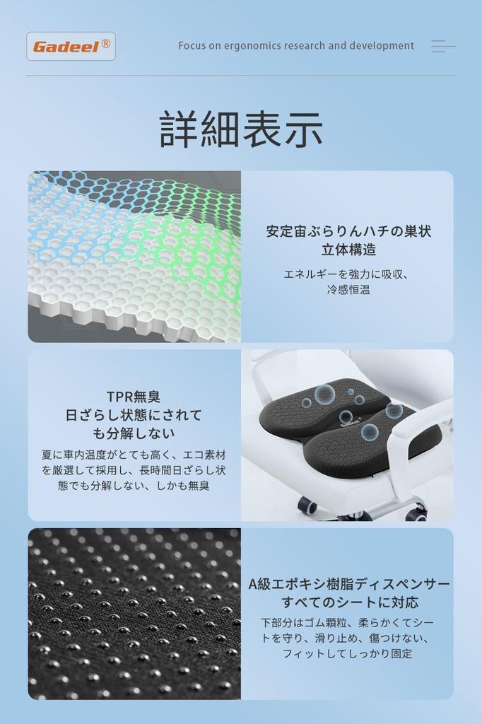 [Усовершенствованная охлаждающая гелевая подушка ICE, хорошая воздухопроницаемость и гибкость] Эта 3D охлаждающая гелевая подушка изготовлена из охлаждающего гелевого материала с низким поглощением тепла, поэтому вы не почувствуете перегрева, даже если будете сидеть долгое время. Внутренняя часть подушки имеет трехмерную сотовую структуру, которая плотная и трудно деформируется, а также имеет мягкие точки и эластичные поверхности для поддержки удобного положения сидя.. Вентиляционные отверстия рассеивают температуру и влагу, сохраняя сухость и комфорт даже при длительном сидении.. Кроме того, использование охлаждающего гелевого материала, который плохо проводит тепло, сохраняет сиденье прохладным и воздухопроницаемым, делая жизнь и работу более комфортными и удобными.