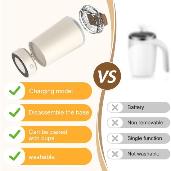 Универсальная съемная база: Инновационная конструкция съемного основания обеспечивает полную совместимость с различными стаканами, превращая эту саморазмешивающуюся кофейную чашку в универсальный инструмент для идеального смешивания и размешивания напитков.