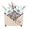 Украсьте свой подарок потрясающим деревянным конвертом, украшенным замысловатыми деревянными цветами.. Это изделие из МДФ и дубового шпона оснащено персонализируемой подарочной биркой и двумя подставками для удобной демонстрации.