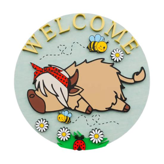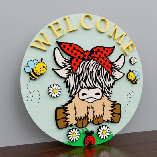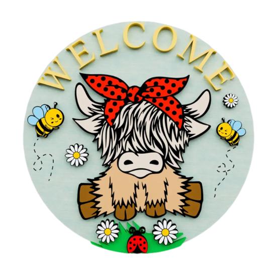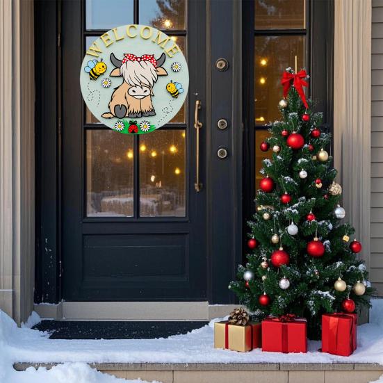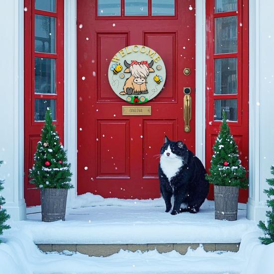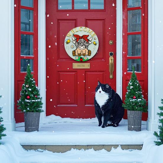 Персонализированное приветственное заявление: Помимо своей декоративной привлекательности, эта дверная табличка «Хайлендская корова» служит теплым приветствием для гостей, отражая ваше гостеприимство и уникальный стиль, что делает ее привлекательным дополнением к весеннему декору вашего дома.