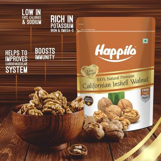 Happilo 100% натуральные калифорнийские сырые грецкие орехи в скорлупе 500 г (Упаковка из 2 шт.)
