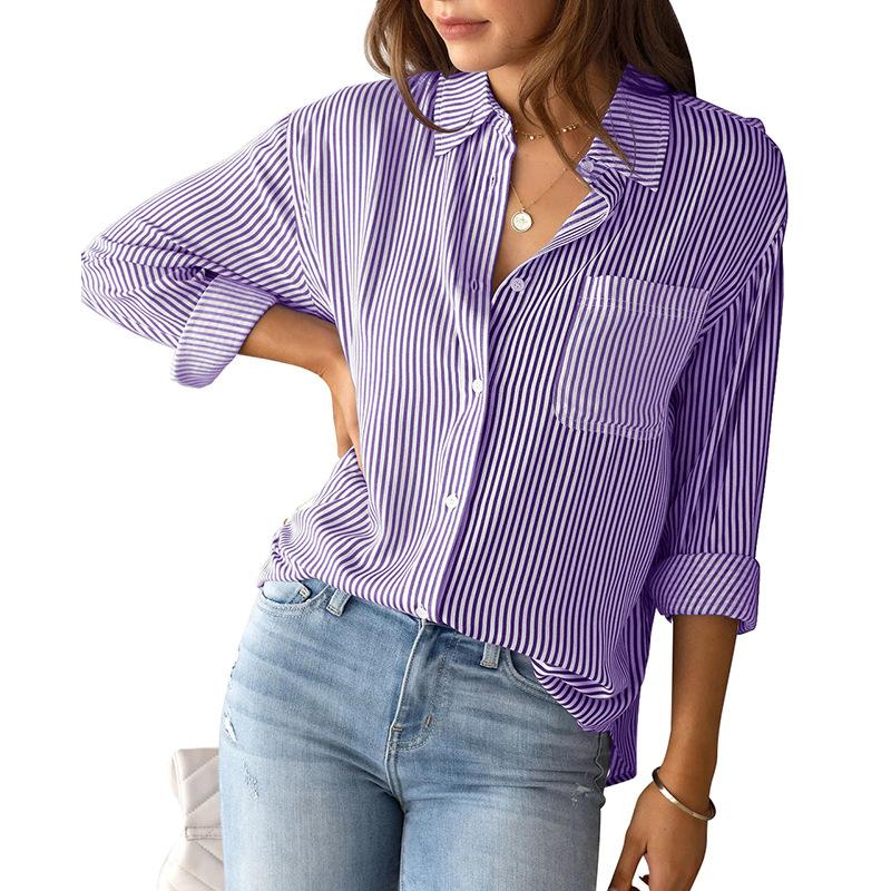 2025 Новый полосатый кардиган блузка женская весна лето свободная повседневная рубашка с длинными рукавами