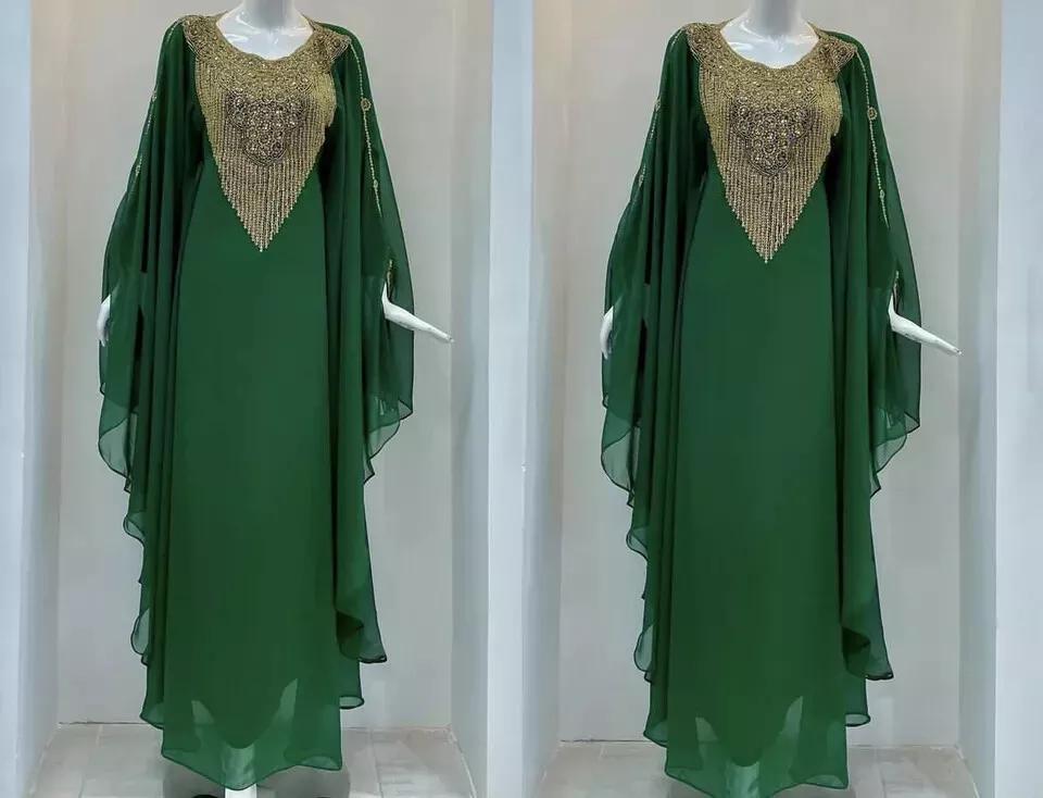 Стильное зеленое платье из жоржета. Исламский кафтан Дубай Фараша Марокканская Абая. — купить товар онлайн с бесплатной доставкой по всему миру!