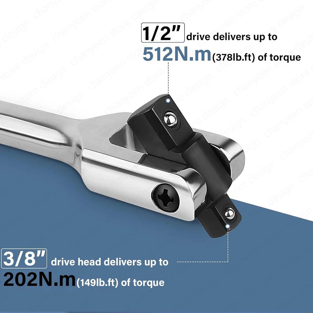 1/2'' приводной гаечный ключ с удлинителем 10/15/18 дюймов, гибкая головка Cr-V на 180 градусов и гравированная нескользящая ручка, ремонтные инструменты
