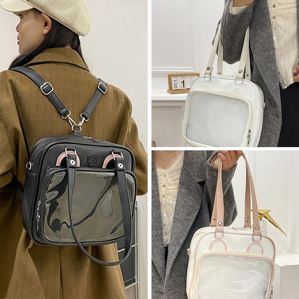 Описание товара: ❤Название продукта: 3WAY квадратная сумка ita с прозрачным окном ❤Материал: PU кожа, полиэфирное волокно (Подкладочные материалы) ❤Размер: 27*25*8 см (длина*высота*ширина) Слой боли: 16× 23,5×3 см Высота ремешка для руки 25 см Общая длина плечевого ремня 126 см ❤Стиль: Черный Белый Розовый Чистый Белый Лазерный Серебряный ❤Вес: приблизительно. 0,7 кг ❤Внешний вид: Квадратная сумка Ita имеет прозрачное окошко с одной стороны, а верхняя часть прозрачного окошка украшена медвежьими ушками. Вы можете расположить внутри товары Moe, которые хотите продемонстрировать, по своему вкусу, а также защитить мягкие игрушки от воды и пыли.. Сумка имеет конструкцию с застежкой-молнией.. ❤Дизайн: 3-х сторонняя сумка (с ручным ремнем и плечевым ремнем). Как использовать наплечный, ручной и рюкзаковый вариант. Плечевой ремень съемный, длина регулируется.. Ремешок для руки также съемный.. Сзади есть карман на молнии. ❤Приложений: Сумки для хранения, декора, выхода в свет и демонстрации. Вы можете хранить такие вещи, как мобильные телефоны, наушники, планшеты, зарядные устройства, мягкие игрушки, товары Moe, фотографии любимых знаменитостей и персонажей аниме, ремешки и т. д.. Не только для повседневного использования, но и для мероприятий, путешествий, экскурсий.,