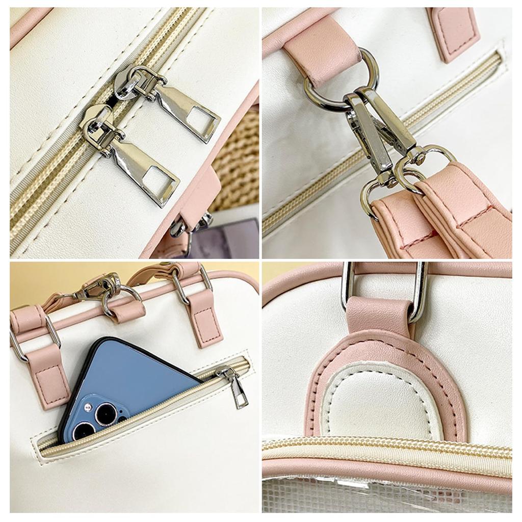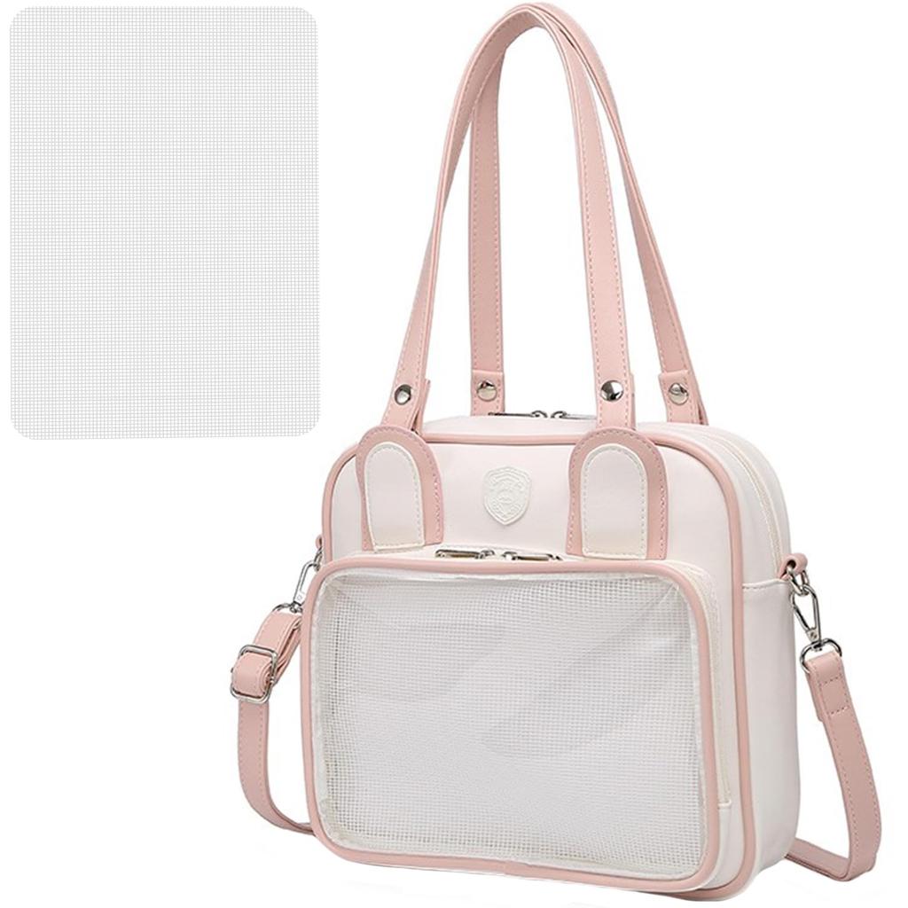[Характеристики] ❤Название продукта: 3WAY квадратная симпатичная сумка ita с прозрачным окошком. ❤Материал: PU кожа, полиэфирное волокно (Подкладочные материалы). ❤Стиль: белый розовый ❤Вес: около 0.7кг. ❤Пакеты включают в себя: Сумка * 1 (с двумя плечевыми ремнями + одна сетчатая простыня).