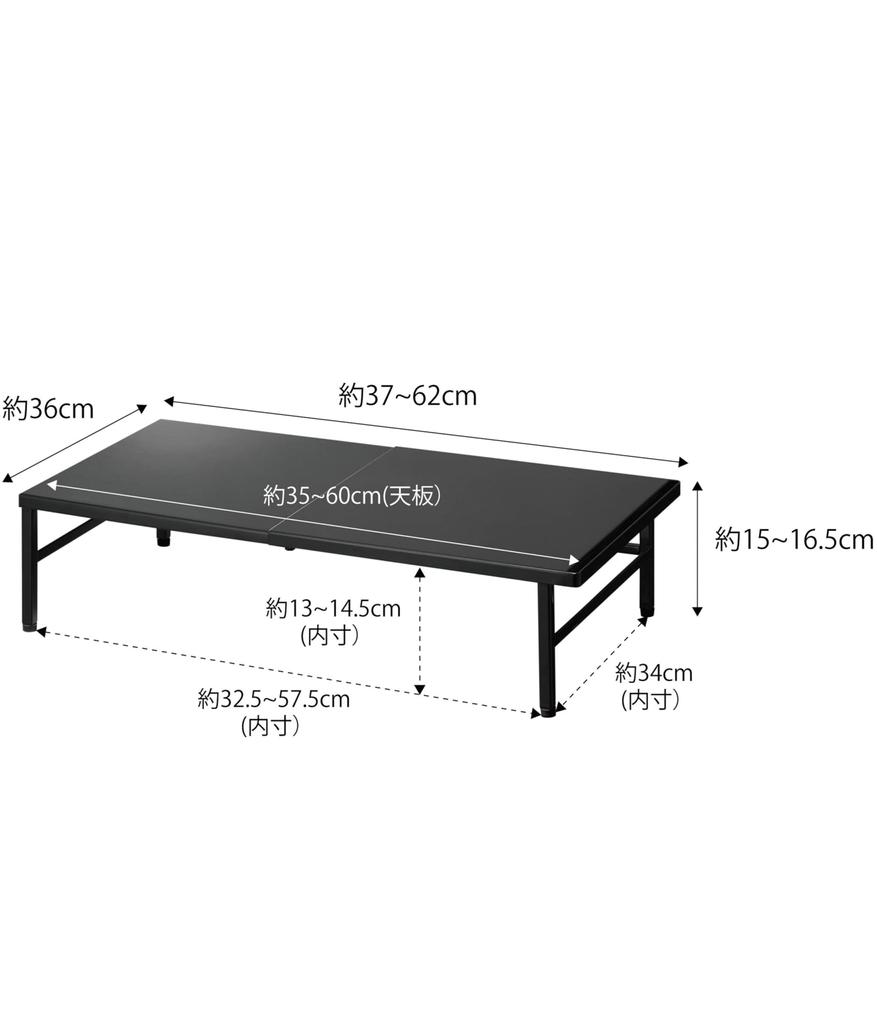 Yamazaki Jitsugyo 5182 Выдвижная посудомоечная машина, нижний ярус превращается в работу, поставляется с регулировочным приспособлением, в комплекте полка, черная, прибл.. Ш37~62XГ36XВ15~16.5см,
