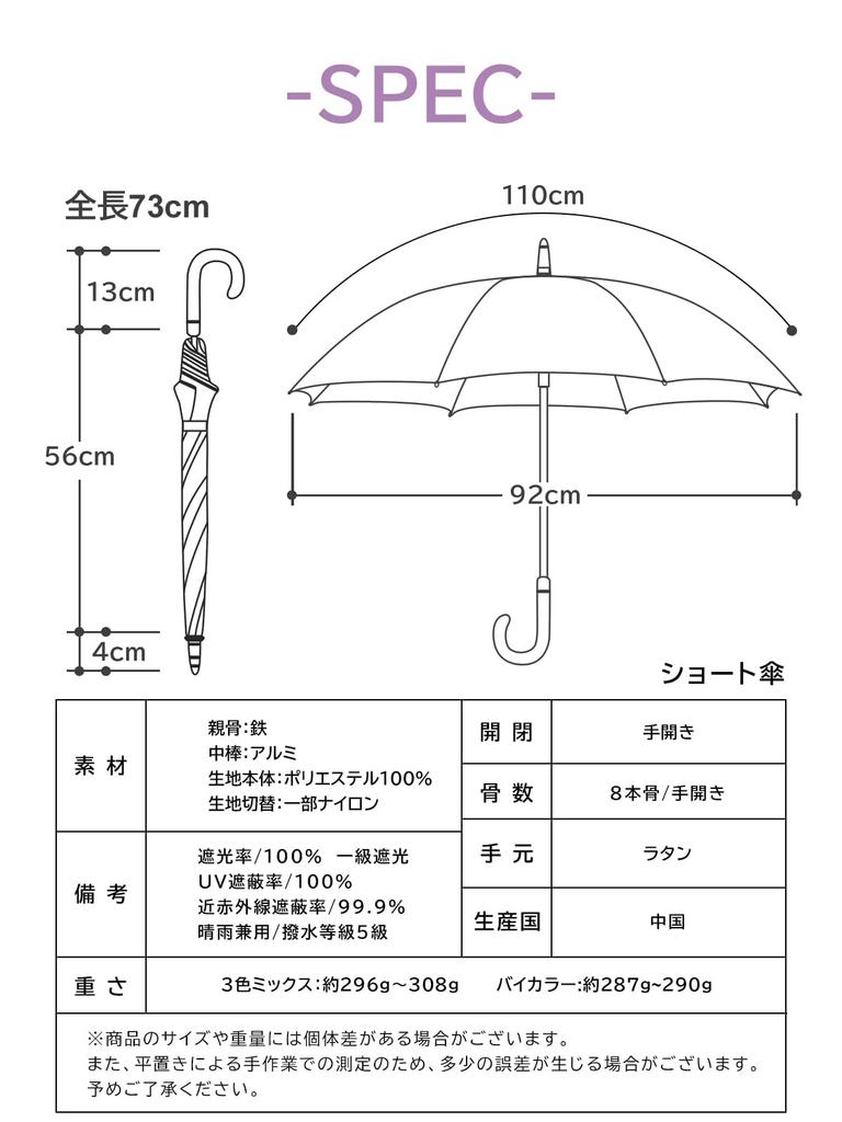 Дизайн, который легко сочетается с любым стилем одежды. Длинный зонт, который можно использовать как в солнечные, так и в дождливые дни.. Защищает ваше тело от сильного солнечного света, дождя и ветра.. Рукоятки из бамбука и ротанга с текстурированной поверхностью [Размер] Общая длина: 73см, ребро: 55см, диаметр: 84см/92см *Обратите внимание, что возможны погрешности в зависимости от метода измерения.. [Вес] Примерно 287 г-320 г *Спасибо за понимание, так как могут быть небольшие индивидуальные различия в зависимости от цвета. [Цветовые вариации] [Двухцветный] [3-цветный микс] [Вышивка лентами] [Глубокое сочетание] [Характеристики] ■Высокофункциональный зонт со 100% степенью блокировки света, 100% степенью защиты от УФ-излучения и 5-й степенью водоотталкивания. ■Изготовлен из 8 ветроустойчивых ребер, что затрудняет поломку. ■Доступно в 28 цветах: двухцветный/трехцветный микс/вышивка лентами/комбинация глубокого натяжения. Популярный дизайн, непринужденный и легко сочетаемый! ■Имеет наивысший уровень водоотталкивания, поэтому его также можно использовать в качестве зонта.. Превосходная вещь, которую можно использовать круглый год, независимо от сезона, и которая незаменима для защиты от дождей и ультрафиолета! [Внимание] ■Изделие имеет острые края.. Всегда проверяйте безопасность своего окружения.