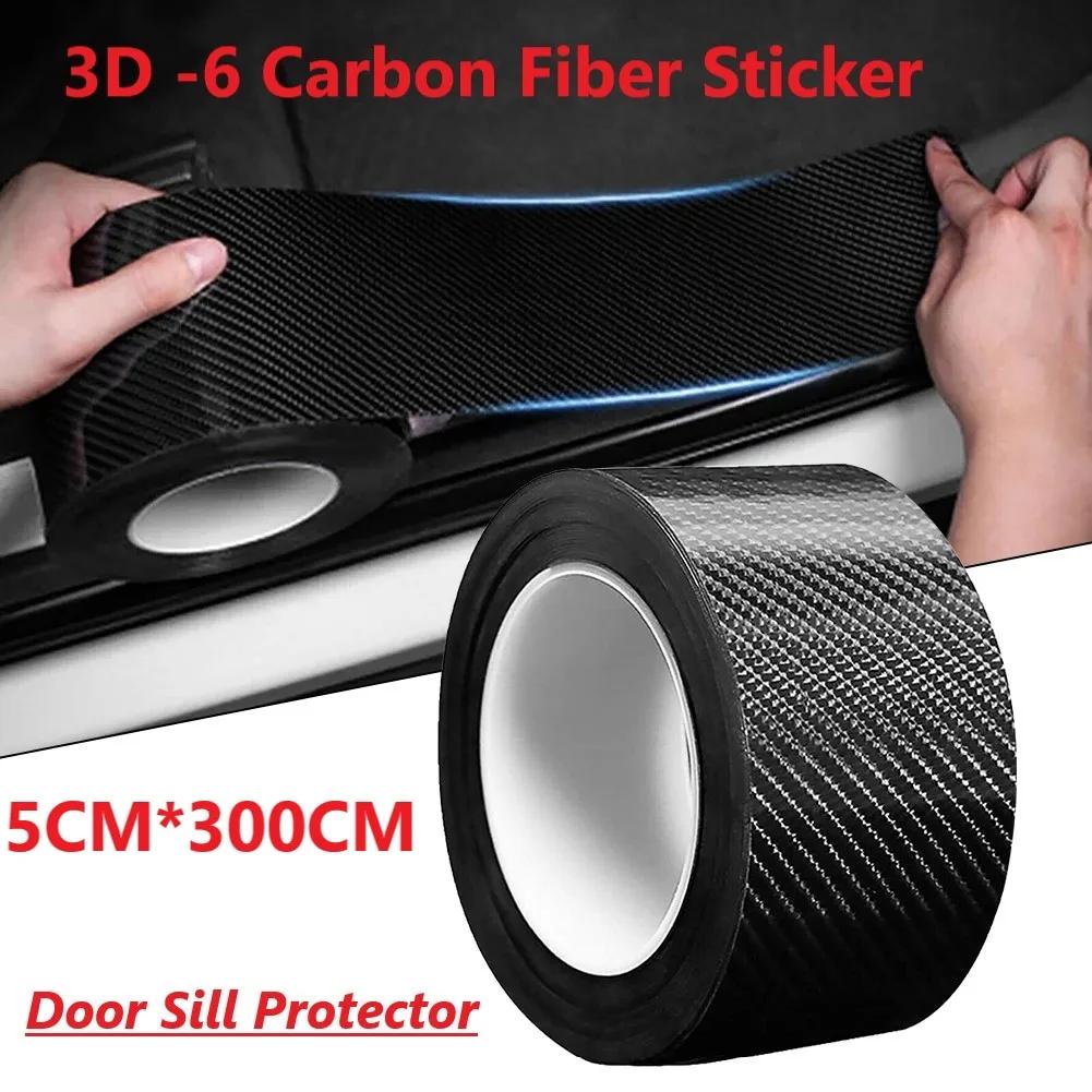 Наклейка на порог автомобиля, защитная наклейка 3D -6 из углеродного волокна, резиновая, полоска своими руками, 5 см * 3 м, водостойкая, съемная, не повредит автомобилю