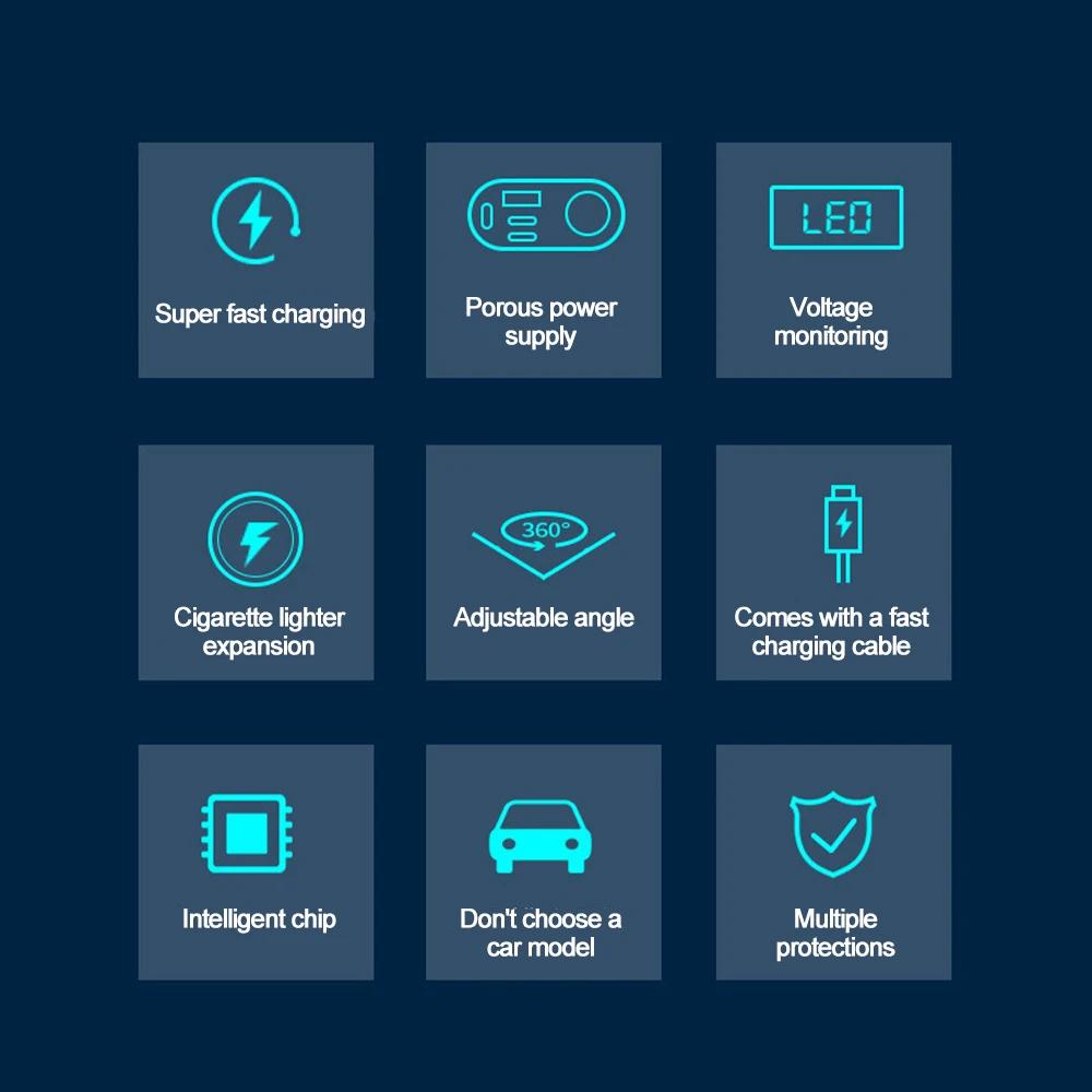 66 Вт 5 портов автомобильное зарядное устройство PD 30 Вт супер быстрая зарядка PD тип C автомобильный прикуриватель гнездо для iPhone Huawei Sumsung Xiaomi LED
