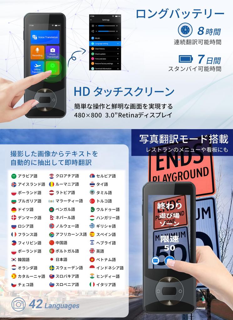 Переводчик Wooask W10 Wooask Screen Portable Translator Поддерживает 138 языков Второе фото перевода Перевод в автономном режиме Поддержка сенсорного экрана Фото