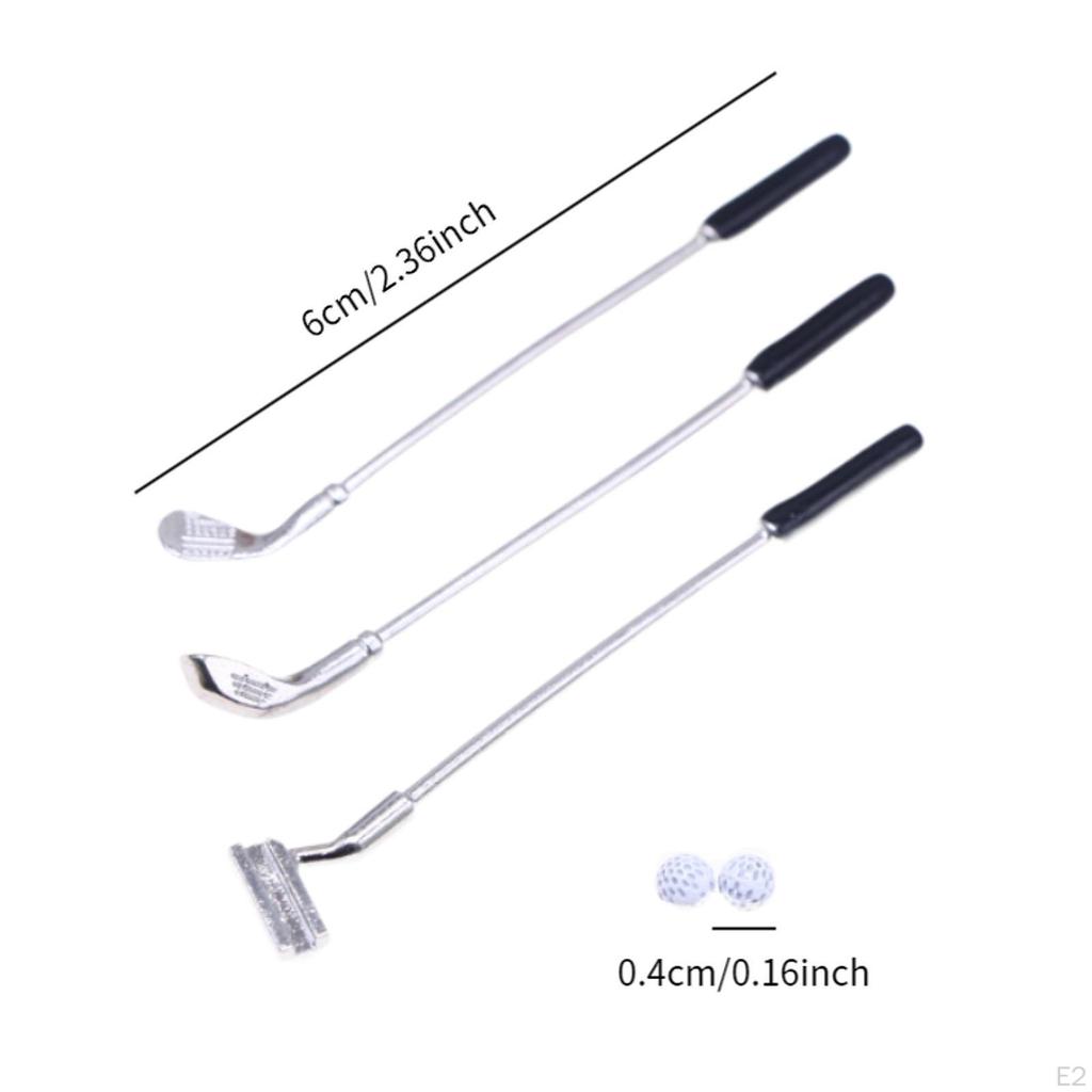 - 【Полный набор из пяти предметов】: В набор игрушечных моделей клюшек для гольфа входят три миниатюрные клюшки для гольфа и два миниатюрных мяча для гольфа, что дает вам разнообразные возможности для украшения и создания увлекательных сценариев в вашем кукольном домике.