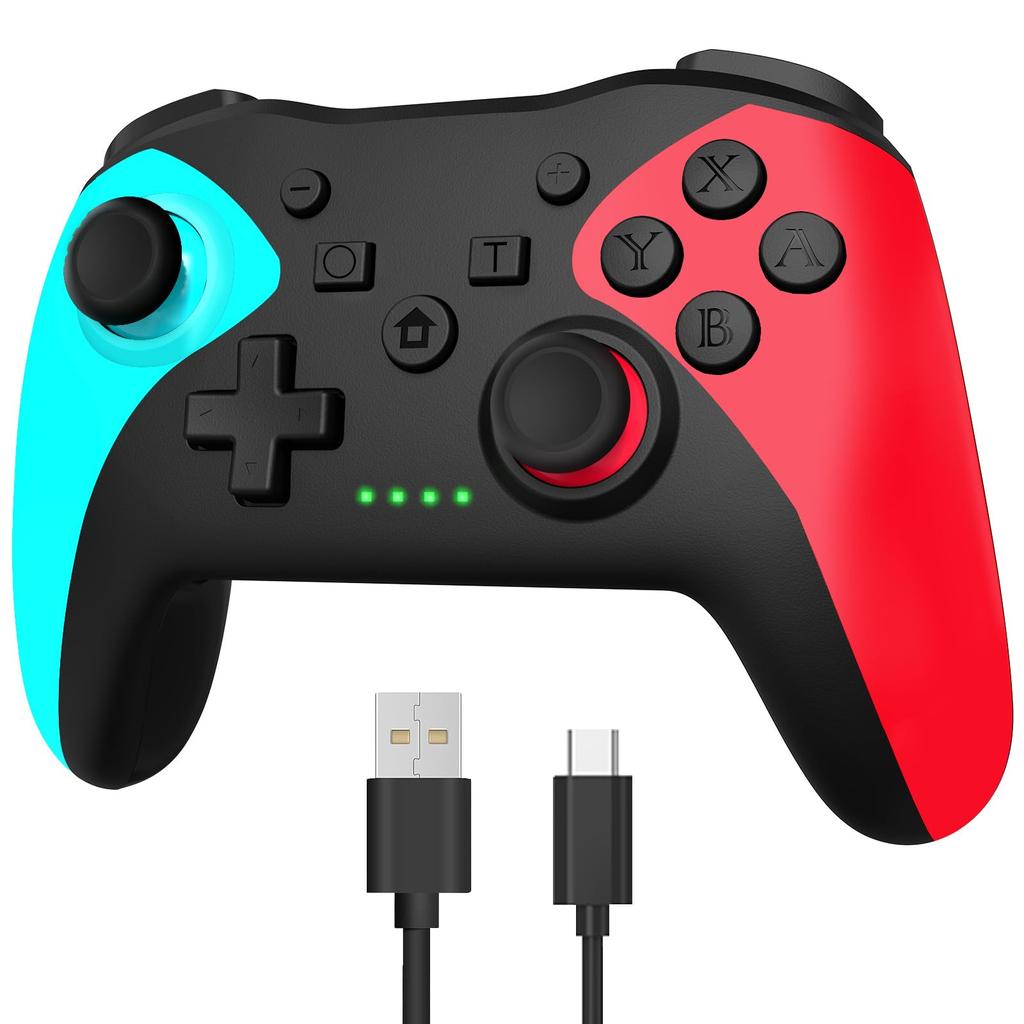 2024 Новый многофункциональный контроллер коммутатора Pro] Инновационный контроллер коммутатора совместим с Switch/Switch Lite/Switch OLED для Android/IOS (iOS16.0 или выше)/ПК с Windows. Использует технологию беспроводной связи Bluetooth 5.0 для достижения плавного беспроводного соединения с хостом Switch, обеспечивая больший контроль и стабильные сигналы соединения.. Нулевая задержка даже на расстоянии 10 метров, что обеспечивает быструю обратную связь, мгновенную передачу и 100% стабильность.. Контроллер Pro Controller Switch оснащен 9 цветами RGB-подсветки и 3 типами режимов подсветки.. Вы можете свободно переключаться между (режим дыхания/режим постоянного света/режим вспышки) по вашему желанию, что оживит атмосферу во время игры!