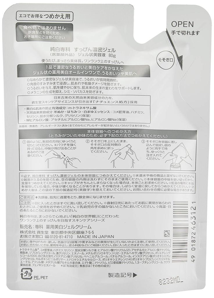 Junpaku Senka Medicated Dense Gel Refill 80 г 80 г Универсальный продукт без макияжа (Квази-лекарство) (х 1)