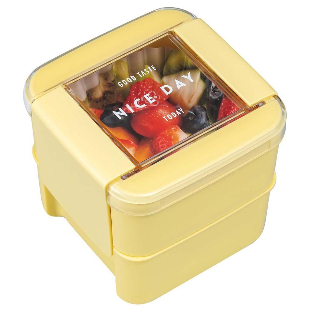 Ланч-бокс Iwasaki Kogyo Easy Care, квадратный, 2-х уровневый, можно использовать в микроволновой печи и мыть в посудомоечной машине, желтый, 680 мл, ширина x глубина x высота 10 см, YE 10,7 10,8 B-1490