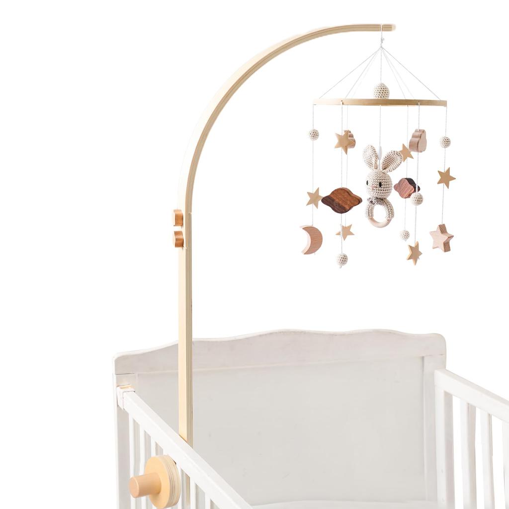 Сделайте Кровать Веселой Деревянной Мобильной Детской Новорожденной Легкой в Постельных Принадлежностях Для Интерьера Давайте Комплект Из 2-х Частей, Подлокотник, Игрушка, Установка, Спящая, Обучающая, [Кролик-Бежевый]