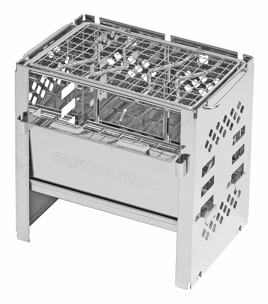 CAPTAIN STAG Барбекю Печь Костер Подставка 3-в-1 Складной Камадо Смарт Гриль Тип B6 с Сумкой 3 Уровня Регулируемый [Набор из нескольких панелей] Серебристый UG-45