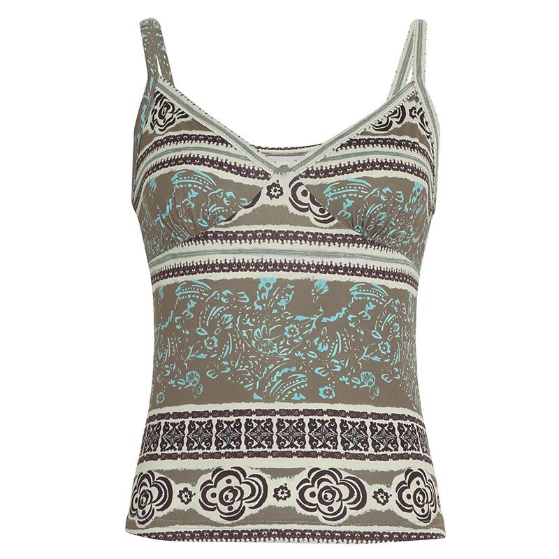 Печатный V-образный вырез ретро Spice Girls сексуальный спинка талия утягивающий нишевый внешний вид подтяжки