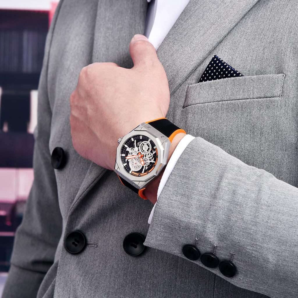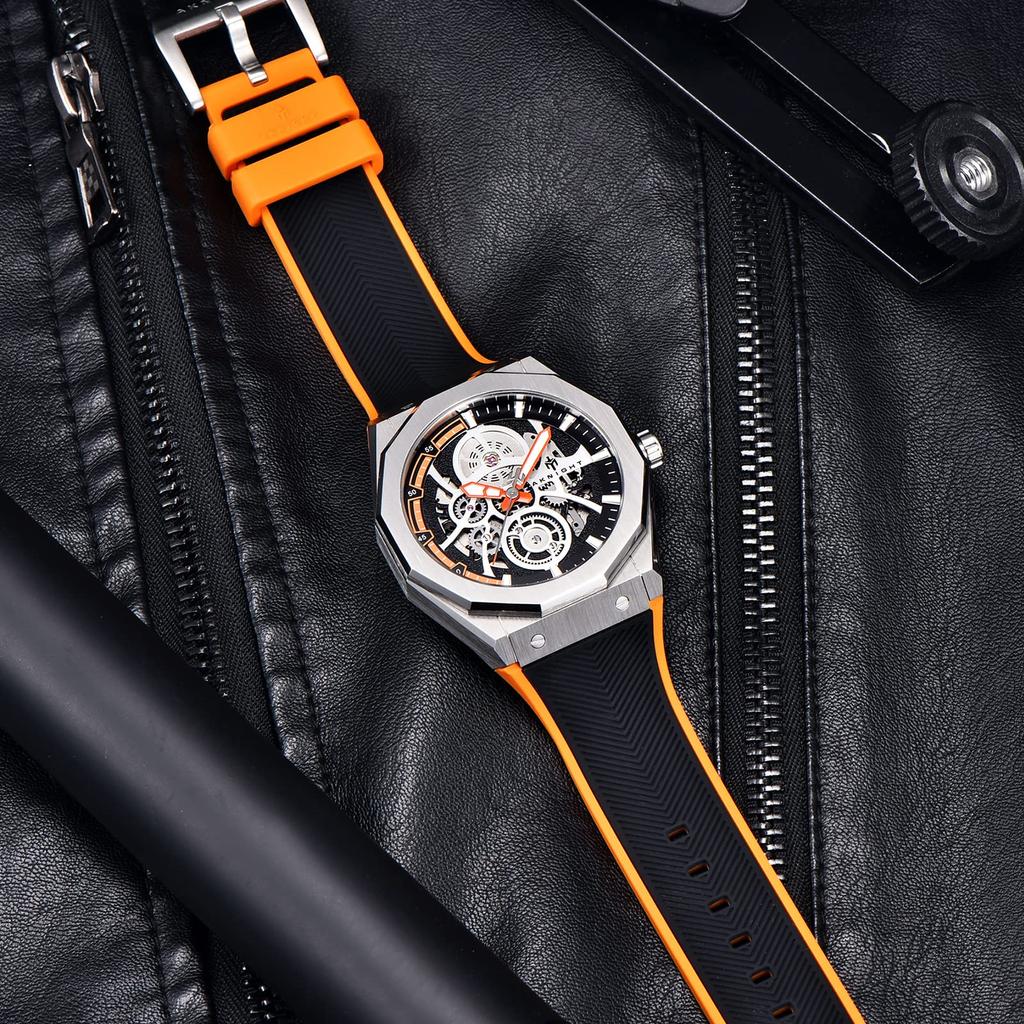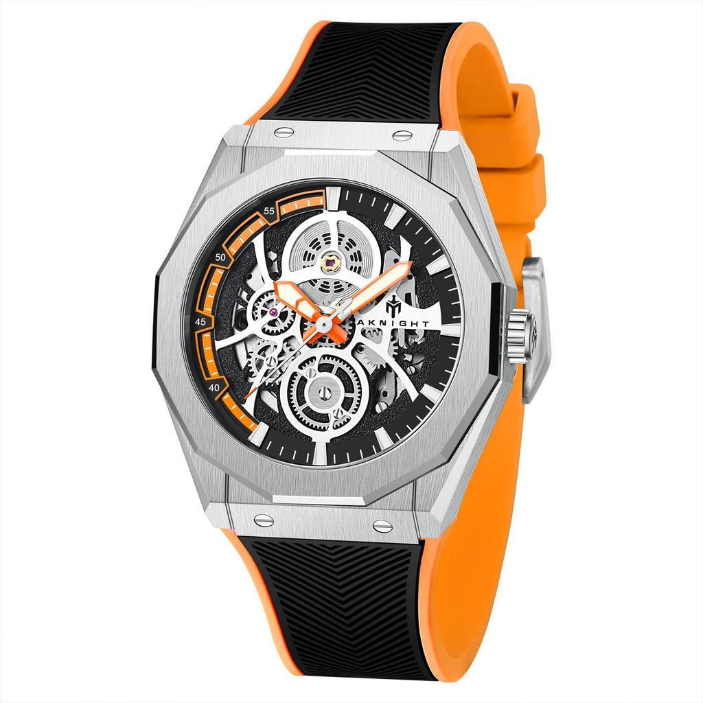 Механические часы Водонепроницаемые 100 м Автоматические часы Скелетон Крутые Стильные Наручные часы Роскошные Водонепроницаемые Светящиеся Оранжевые AKNIGHT-Watch Мужские Мужские