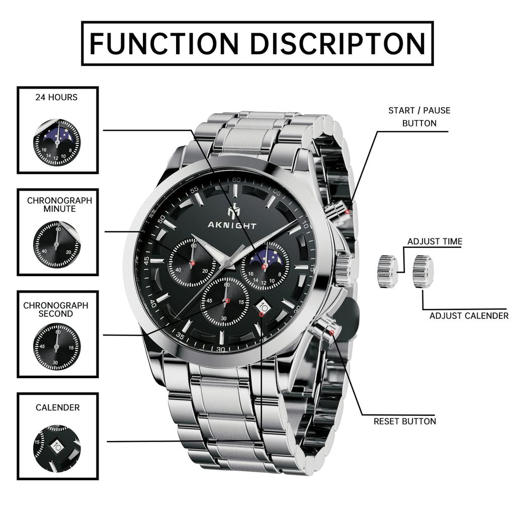 ИДЕАЛЬНЫЙ ПОДАРОК: Мужские часы — идеальный подарок на праздники, в семейном кругу и на встречи.. Ремешок из нержавеющей стали станет великолепным модным подарком на выпускной, день рождения, свадьбу и День святого Валентина.. Подарок с аналоговыми часами-хронографом подойдет для вашего отца, парня или других одноклассников или коллег мужского пола, а также для продвижения по службе, чтобы произвести впечатление на друзей и семью.