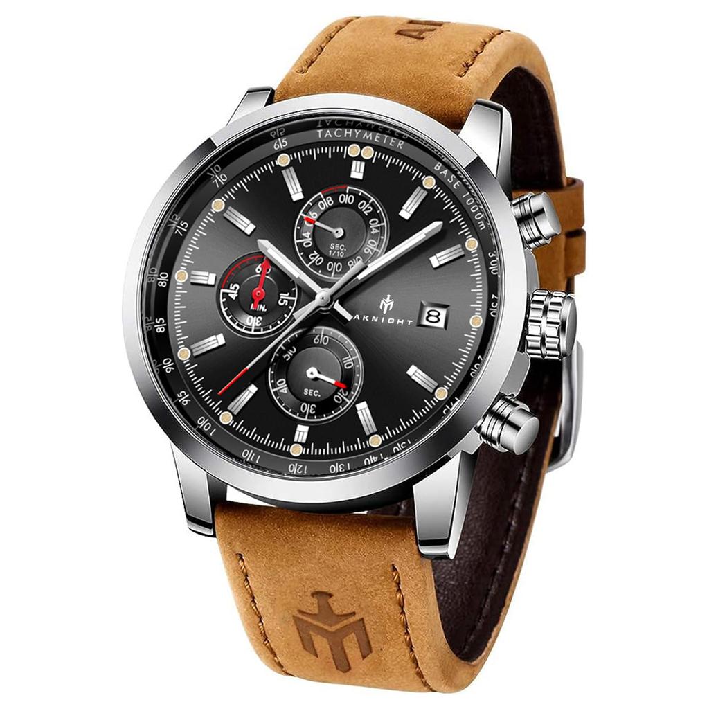 AKNIGHT Натуральная кожа Легко для ношения на руке Мужские часы для японского руководства по эксплуатации Мужские часы, модные, популярные, кварцевые, ремешок, хронограф, кристалл, см.