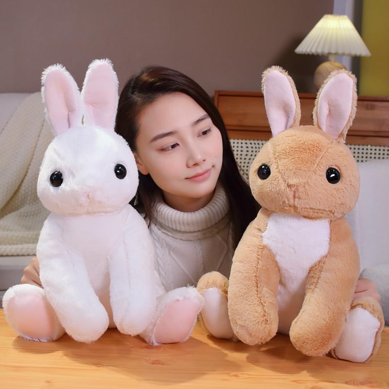 Милая плюшевая игрушка в виде сидящего кролика, мягкая плюшевая игрушка в виде животного, снежная кукла, мультяшная подушка, коричневый белый кролик, игрушки для детей и девочек