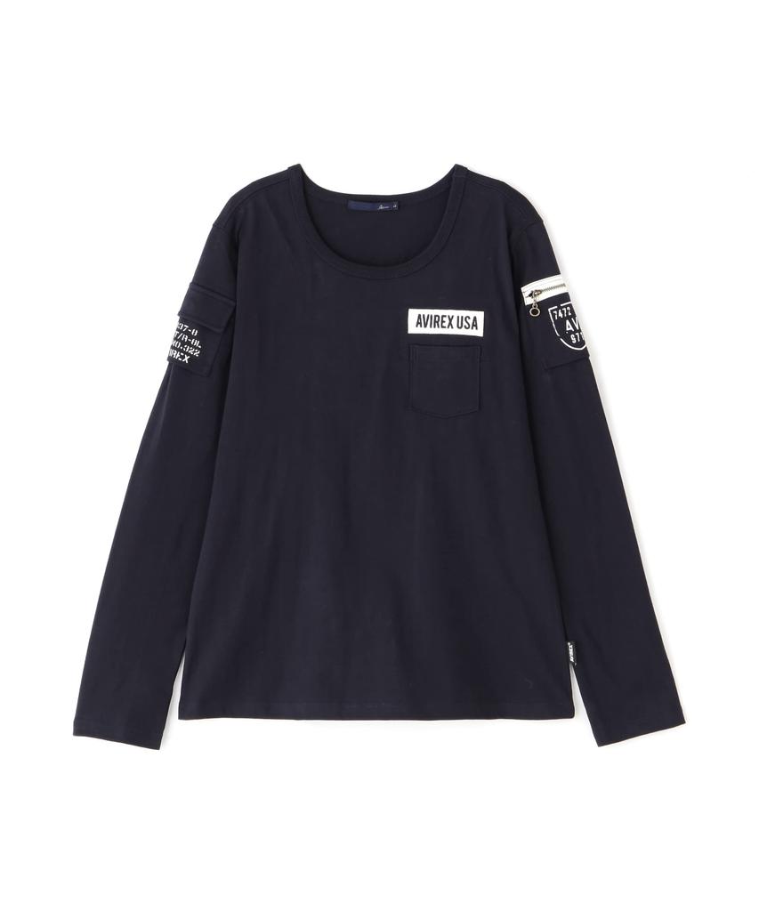 ФУТБОЛКА С ДЛИННЫМ РУКАВОМ FATIGUE Sleeve Fatigue L 120 Navy [Avirex] ЖЕНСКАЯ ФУТБОЛКА/Длинная футболка женская 783-2930602