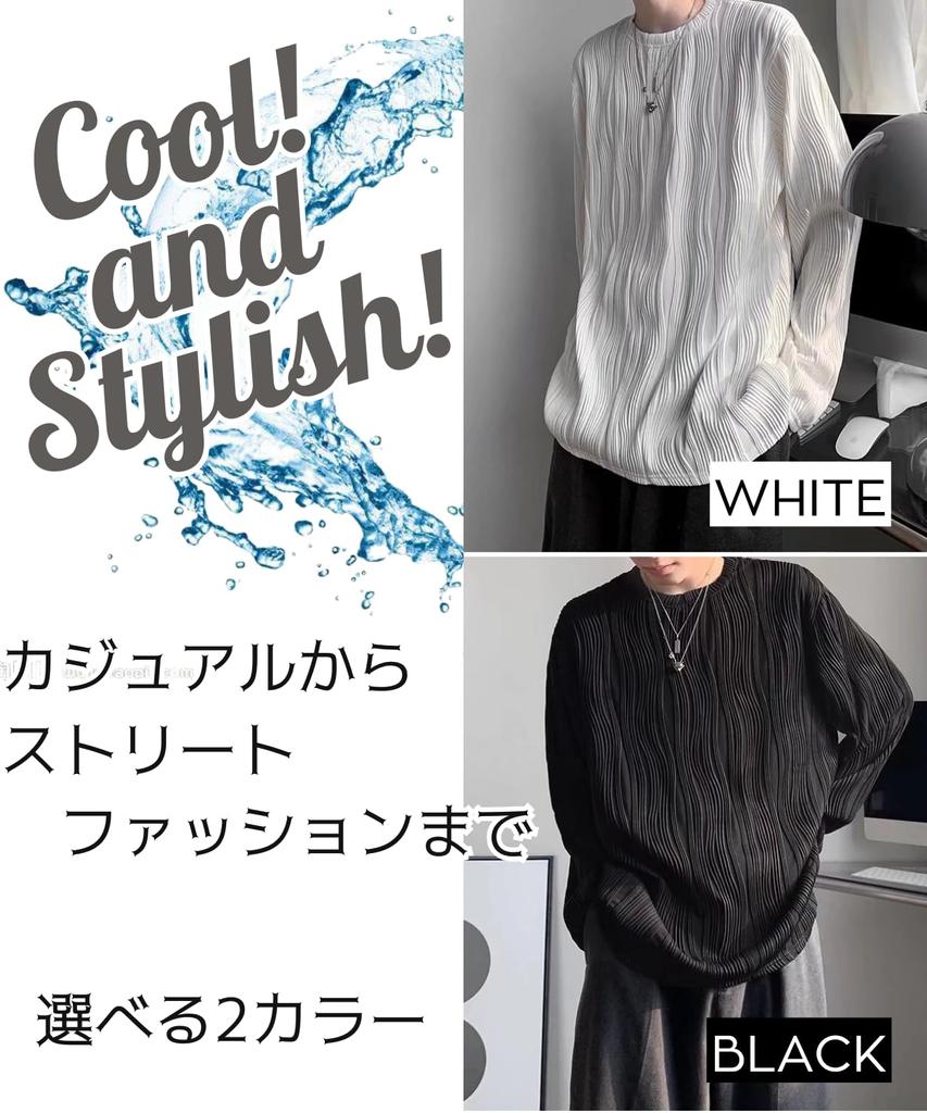 Осенняя свободная длинная большая круглая тисненая круглая горловина [Nymphaea] Мужская одежда, футболка, рукав, размер, топы, стильная, осень, зима, весна, воротник, (Л,