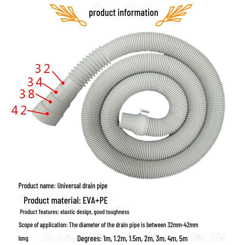 Универсальный удлинитель сливной трубы для стиральной машины - утолщенный выпуск, цельный
