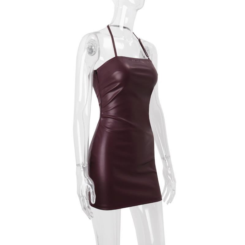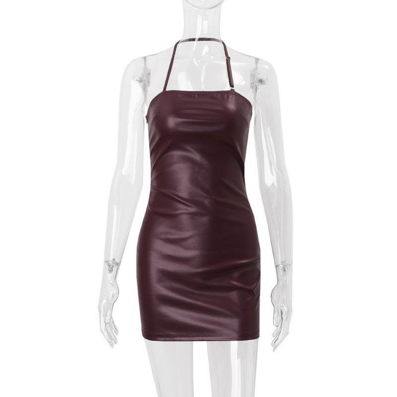 Женские весенние сексуальные винтажные однотонные облегающие мини-платья с запахом и воротничком из кожи